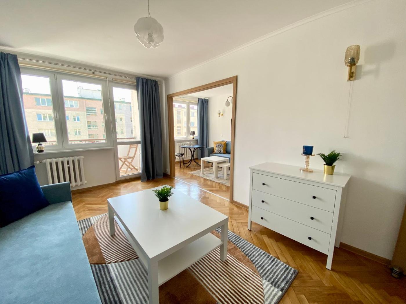 Apartament z 2 sypialniami. This apartment consists of 1 living room, 2 separate bedrooms and 1 bathroom with a shower. Guests can make meals in the kitchen that is equipped with a stovetop, a refrigerator, a dishwasher and kitchenware. Featuring a balcony, this apartment also provides a washing machine, an electric kettle and a flat-screen TV with cable channels. The unit offers 3 beds. Apartament - 6 osobowy. Powierzchnia pokoju ok.: 55 mkw.