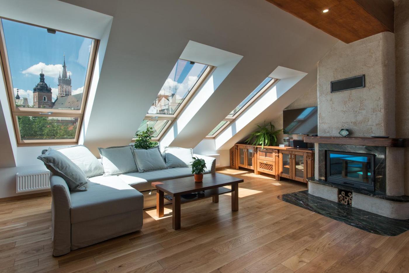 Apartament z tarasem. Featuring a private entrance, this air-conditioned apartment consists of 1 living room, 3 separate bedrooms and 2 bathrooms with a walk-in shower and a bath. Guests can make meals in the kitchenette that is equipped with a stovetop, a refrigerator, a dishwasher and kitchenware. The spacious apartment provides a flat-screen TV with satellite channels, a washing machine, a coffee machine, a seating area as well as city views. The unit offers 5 beds. Apartament - 8 osobowy. Powierzchnia pokoju ok.: 104 mkw. ;
