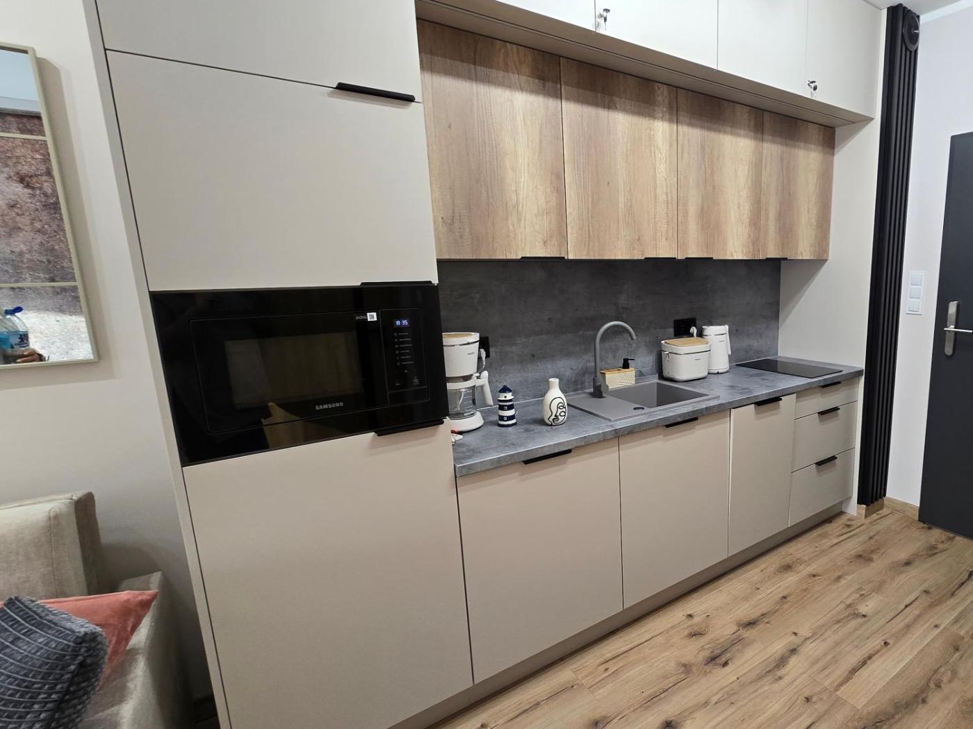 Apartament Premium z 1 sypialnią. Featuring a private entrance, this air-conditioned apartment is comprised of 1 living room, 1 separate bedroom and 1 bathroom with a walk-in shower and a hairdryer. In the well-equipped kitchenette, guests will find a stovetop, a refrigerator, a dishwasher and kitchenware. Boasting a terrace with garden views, this apartment also offers a washing machine and a flat-screen TV with streaming services. The unit offers 2 beds. Apartament - 5 osobowy. Powierzchnia pokoju ok.: 43 mkw. ;