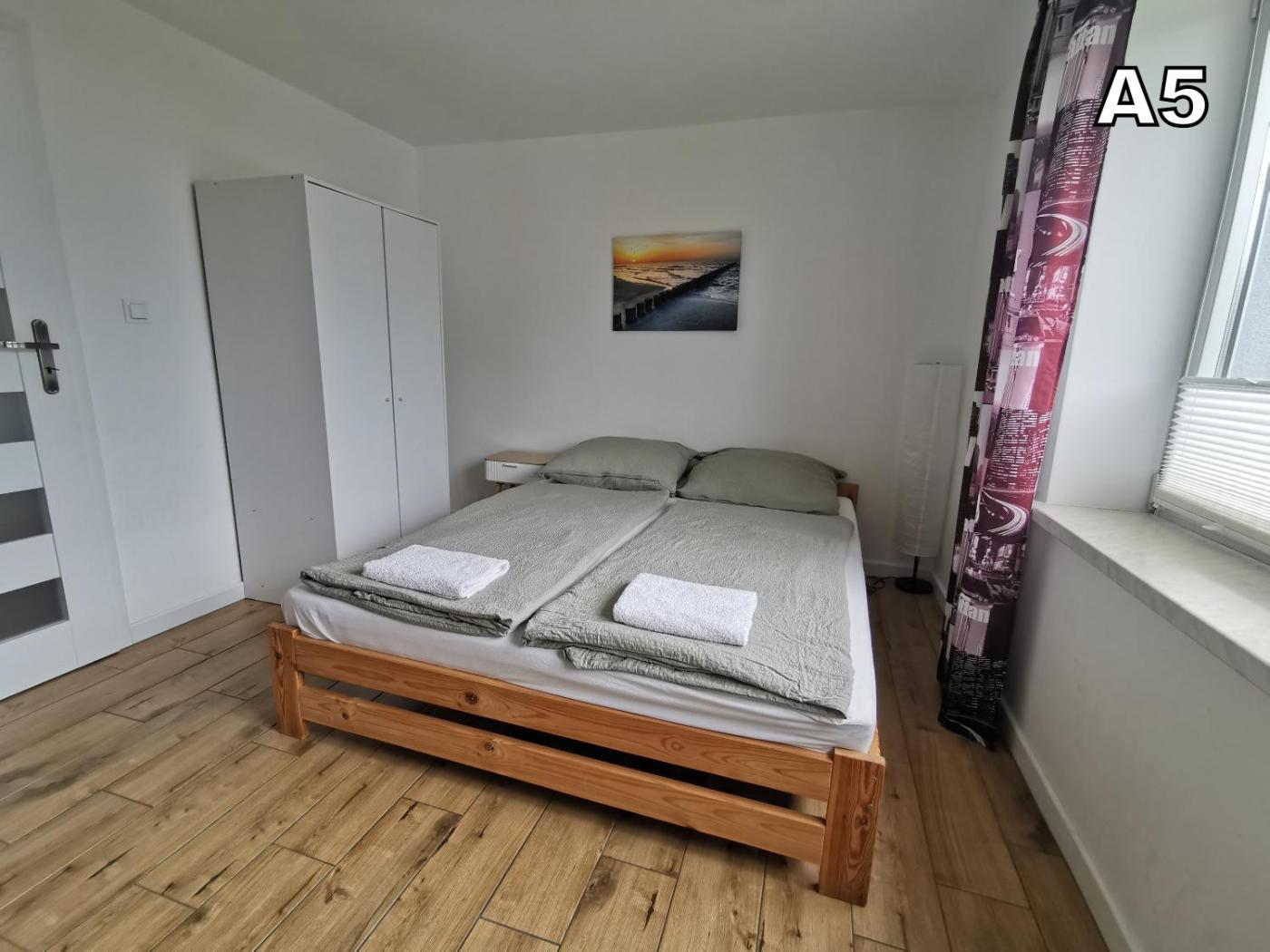 Apartament z 2 sypialniami. Featuring a private entrance, this apartment is comprised of 1 living room, 2 separate bedrooms and 1 bathroom with a shower and a hairdryer. Guests will find a stovetop, a refrigerator, kitchenware and an electric kettle in the well-fitted kitchen. The apartment also has a barbecue. The apartment features tiled floors, a seating area with a flat-screen TV, a dining area, a wardrobe as well as garden views. The unit offers 5 beds. Apartament - 8 osobowy. Powierzchnia pokoju ok.: 45 mkw. ;