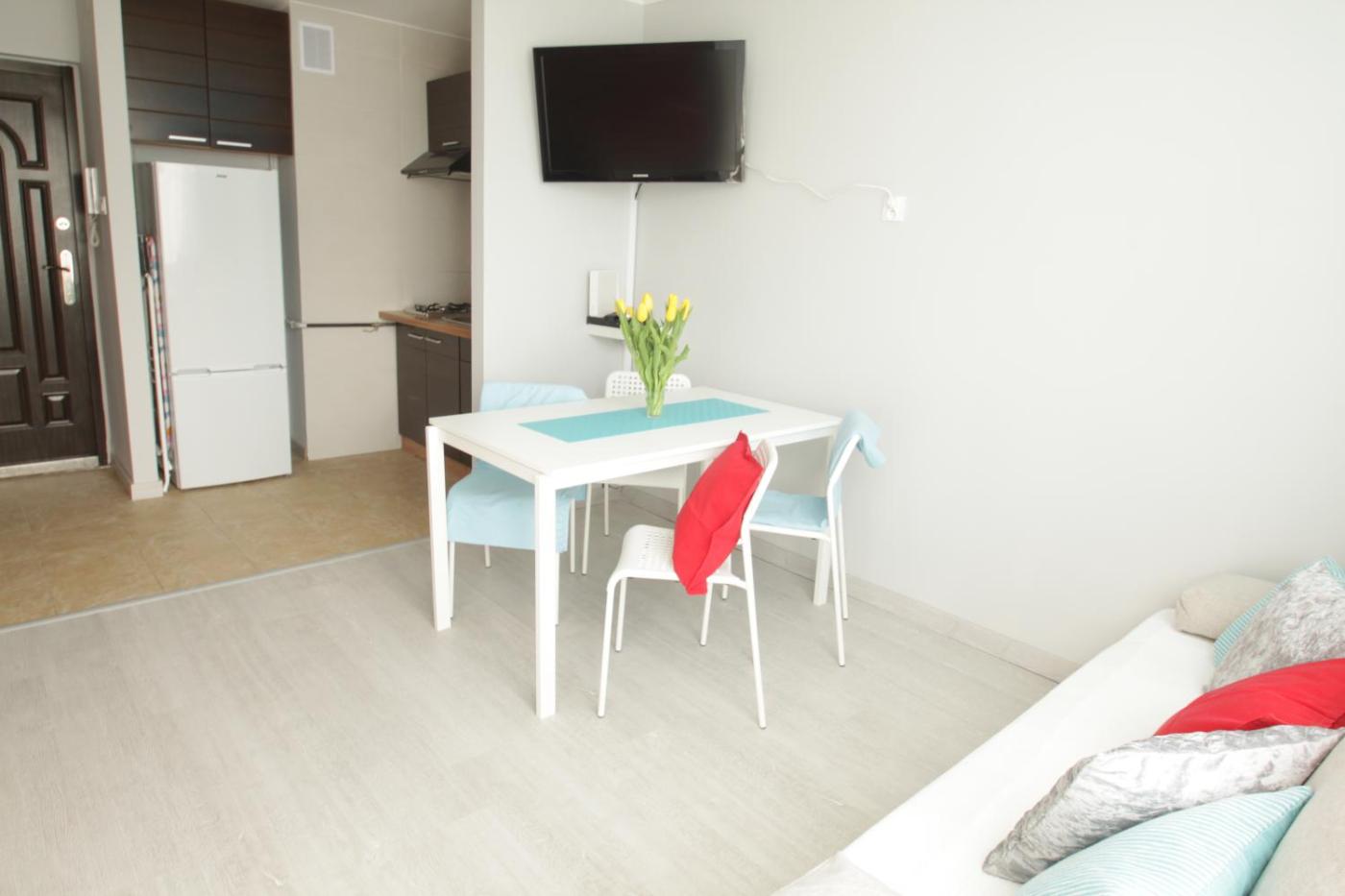 Apartament z 1 sypialnią. A kitchen equipped with a stovetop, a refrigerator and kitchenware is available for cooking and storing food. The apartment offers a washing machine, a private entrance, a tea and coffee maker, a flat-screen TV with cable channels, as well as city views. The unit offers 2 beds. Apartament - 4 osobowy. Powierzchnia pokoju ok.: 30 mkw.