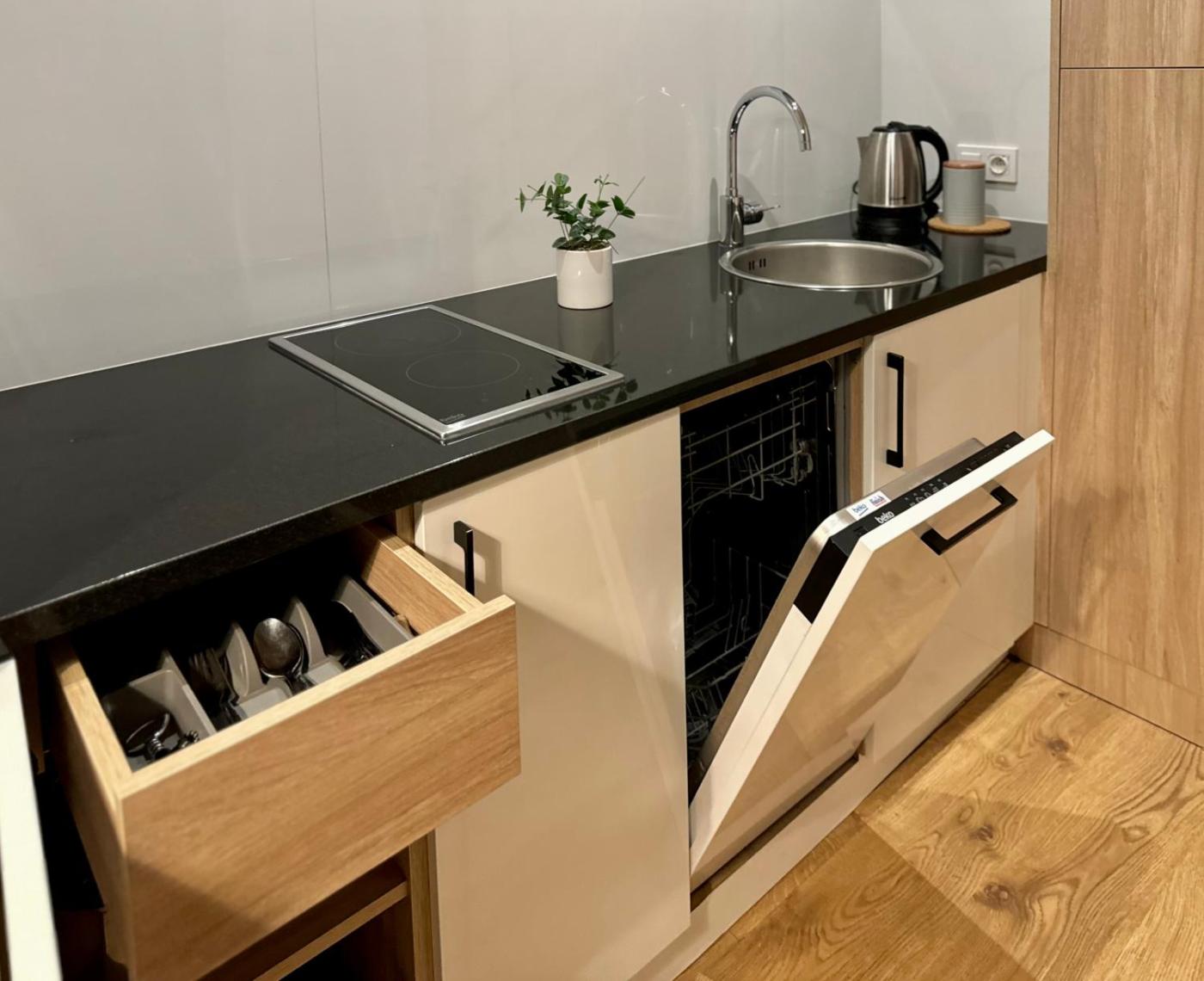 W apartamencie do dyspozycji gości przygotowano sypialnię (1), salon z telewizorem z płaskim ekranem, kuchnię ze standardowym wyposażeniem, a także łazienkę (1) z prysznicem i suszarką do włosów.