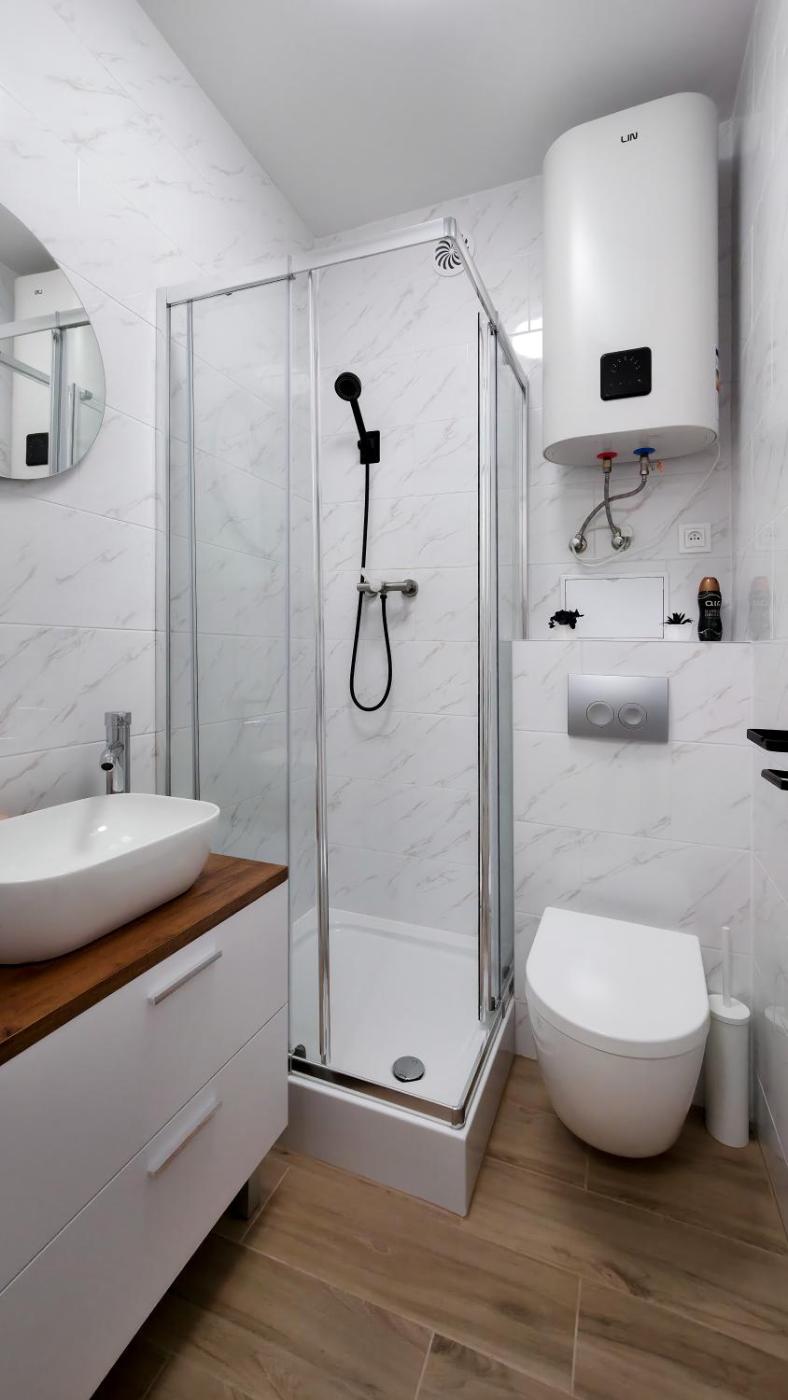 Apartament z 1 sypialnią. The apartment features 1 bedroom and 1 bathroom with a shower and free toiletries. In the well-equipped kitchenette, guests will find a stovetop, a refrigerator, kitchenware and a microwave. The apartment offers a flat-screen TV with streaming services, a tea and coffee maker, a dining area, a wardrobe as well as city views. The unit offers 1 bed. Apartament - 2 osobowy. Powierzchnia pokoju ok.: 20 mkw.