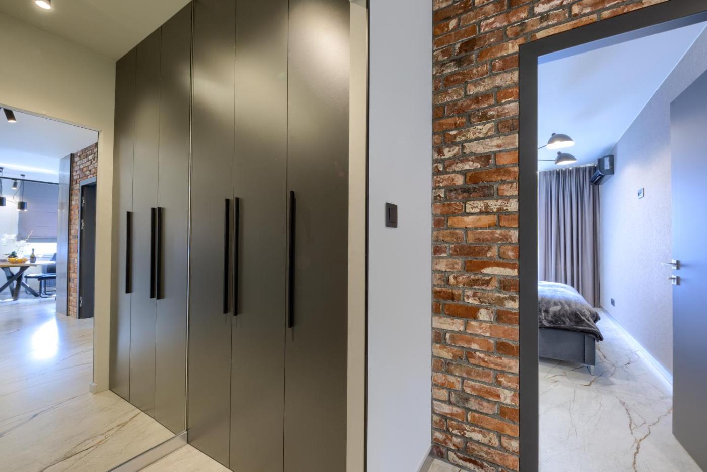 Apartament z 2 sypialniami. This spacious apartment consists of 1 living room, 2 separate bedrooms and 1 bathroom with a shower and free toiletries. Guests can make meals in the kitchenette that is equipped with a stovetop, a refrigerator, a dishwasher and kitchenware. The air-conditioned apartment provides a flat-screen TV, a washing machine, a private entrance, soundproof walls as well as garden views. The unit offers 3 beds. Apartament - 4 osobowy. Powierzchnia pokoju ok.: 70 mkw. ;