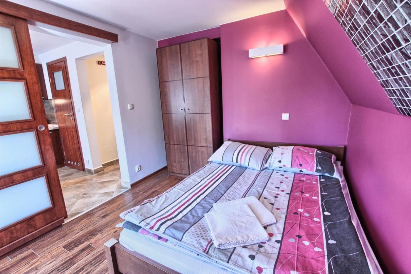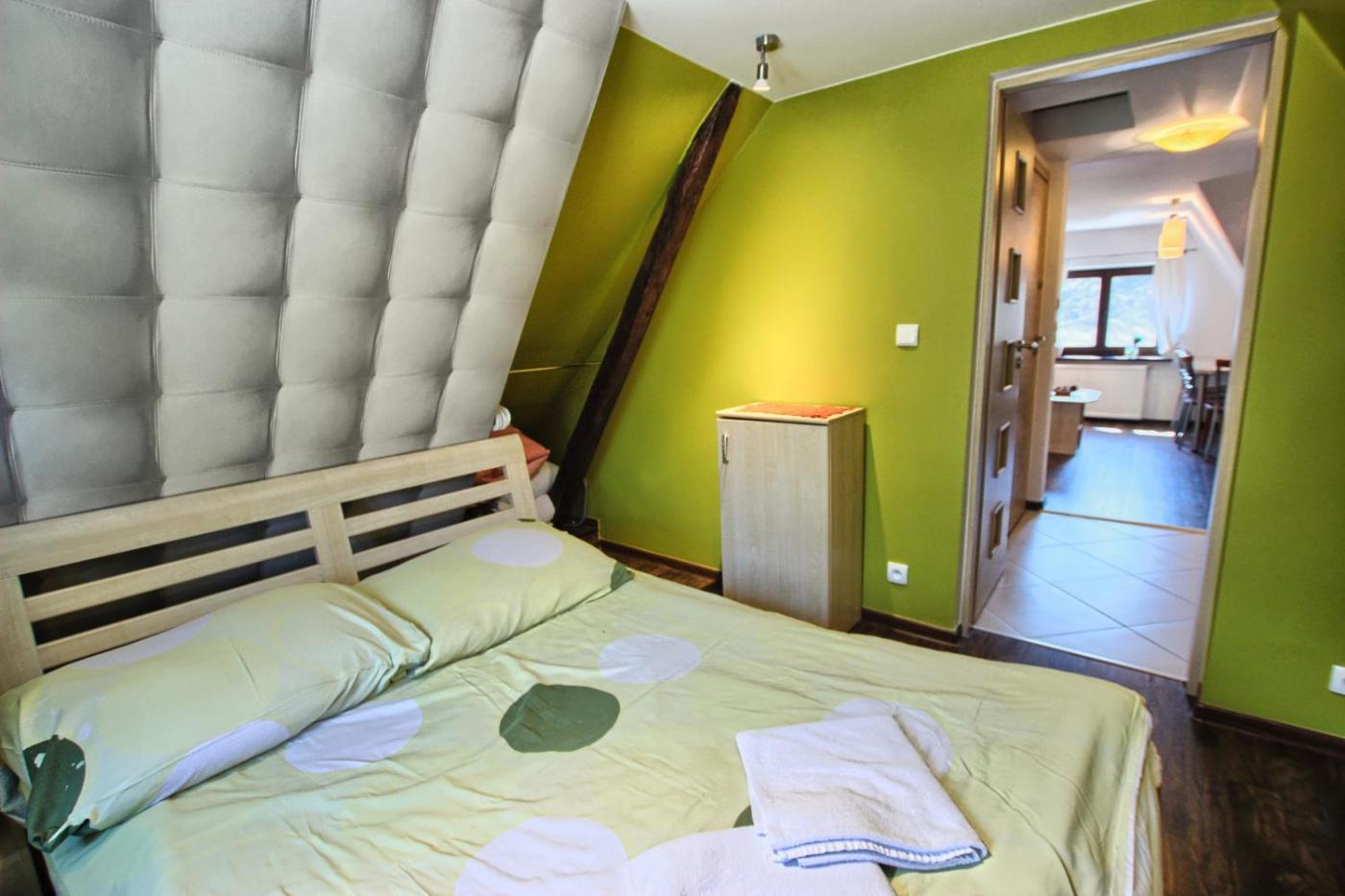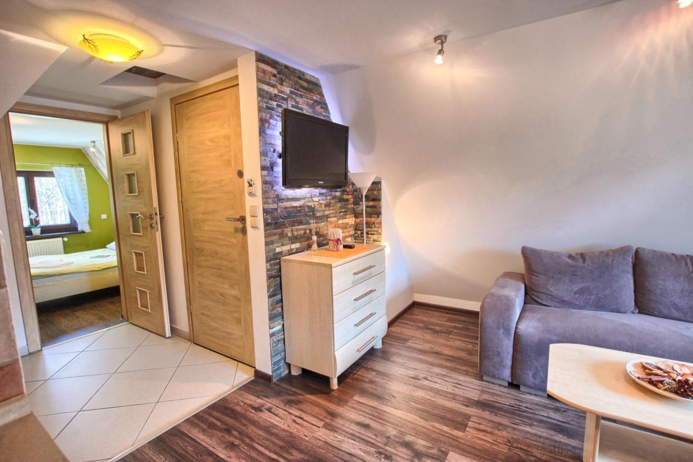 Apartament z widokiem na góry. This apartment comprises 1 living room, 1 separate bedroom and 1 bathroom with a walk-in shower. Meals can be prepared in the kitchenette, which comes with a stovetop, a refrigerator, kitchenware and an electric kettle. The apartment provides a flat-screen TV, a seating area, a dining area, a wardrobe as well as mountain views. The unit offers 2 beds. Apartament - 3 osobowy. Powierzchnia pokoju ok.: 28 mkw. ;